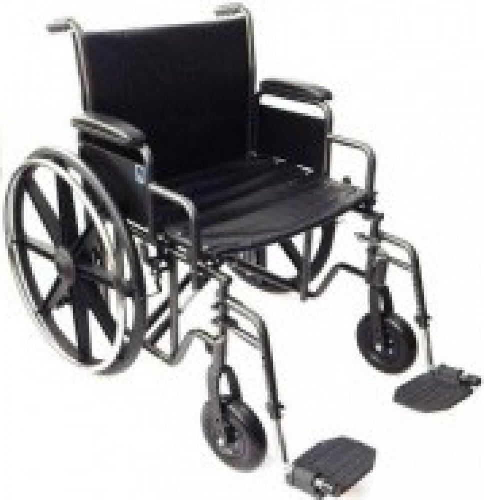 Zesílený s nosností 225kg Invalidní vozík mechanický s ocelovým skládacím (křížovým) rámem se zvýšenou nosností 225 kg a šířkou sedáku 61 cm a plnými koly. Šířka sedáku 61 cm Celková šířka 85 cm Rám ocelový zesílený, skládací (křížový) Sedák i zádová opěrka z omyvatelného PVC. Loketní opěrky odnímatelné krátké. Zadní kola plná 24"s parkovacími brzdami. Přední kola plná 8", šířka 6cm Stupačky odklo...