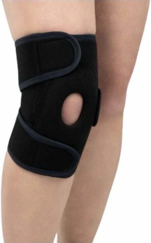 Ve střední části ortézy je otvor s pěnovým kroužkem , který polohujeortézu a uvolňuje patelu.