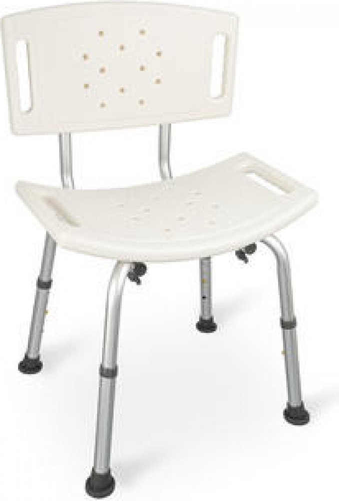 Sprchovacia stolička s operadlom, výškovo nastaviteľná 36 - 46cm Sprchová stolička s operadlom je pomocné zariadenie, ktoré užívateľovi uľahčuje vykonávanie hygienických činností. Odporúča sa pre ľudí so zníženou pohyblivosťou, ktorá zabraňuje alebo sťažuje nezávislé vykonávanie každodenných činností. Taburetku sa odporúča používať v sprche, vo vani, v kúpeľni a iných vlhkých miestnostiach, doma aj v nemocnici. Vlastnosti:hliníkový rám široké sedadlo z PVC bočné rukoväte na sedadle výškovo nastaviteľné nohy protišmykové gumené čiapky Technické parametre:celková šírka: 49 cm hĺbka: 39 cm výška sedadla: 36 - 46 cm rozmery sedadla: 49 - 29 cm hmotnosť: 1,5 kg nosnosť: 136 kg Obsah balenia:1 x Sprchovacia stolička s operadlom, výškovo nastaviteľná 36 - 46cm