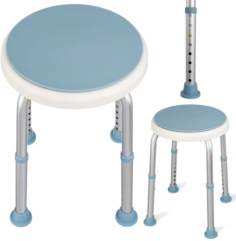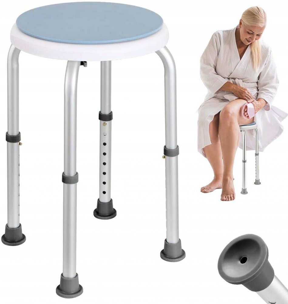 Rám hliníkový, eloxovaný, výškově nastavitelný. Sedátko plastové kulaté otáčecí. Protiskluzové nástavce.