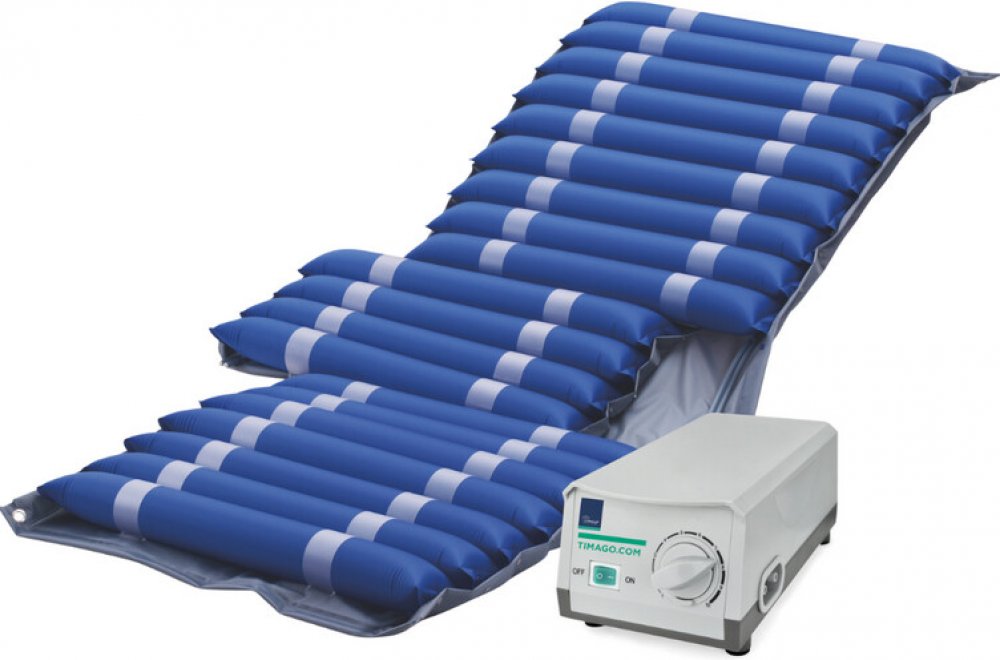 Trubková antidekubitní matrace s vyjímatelnými vzduchovými komorami (k odstranění fekálií a moči) a kompresorem