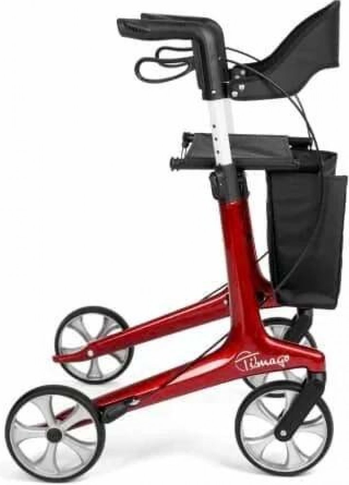 Toto ultralehké pouhých 5,3 kg vážící čtyřkolové chodítko FUTURO uspokojí i nejnáročnějšího seniora. Konstrukce je vyrobena z uhlíkového vlákna potažená sytě červeným metalickým lakem. Výškově nastavitelné rukojeti, sedák s opěradlem a velká nákupní taška dělá z tohoto chodítka favorita. Nosnost do 150 kg.