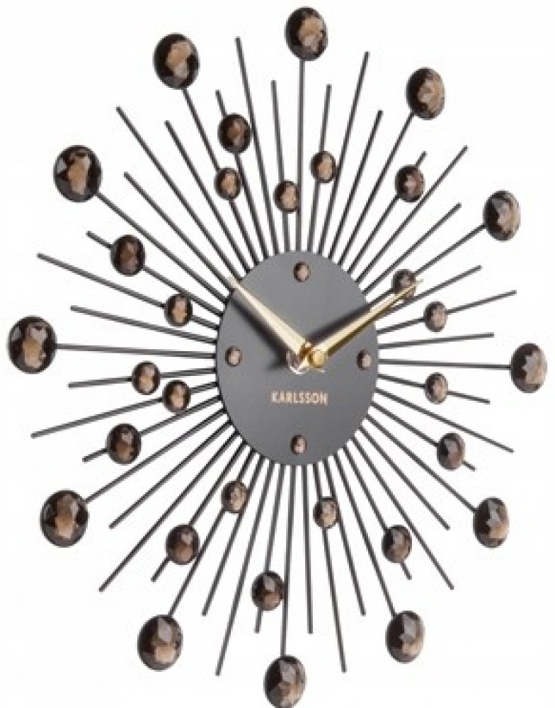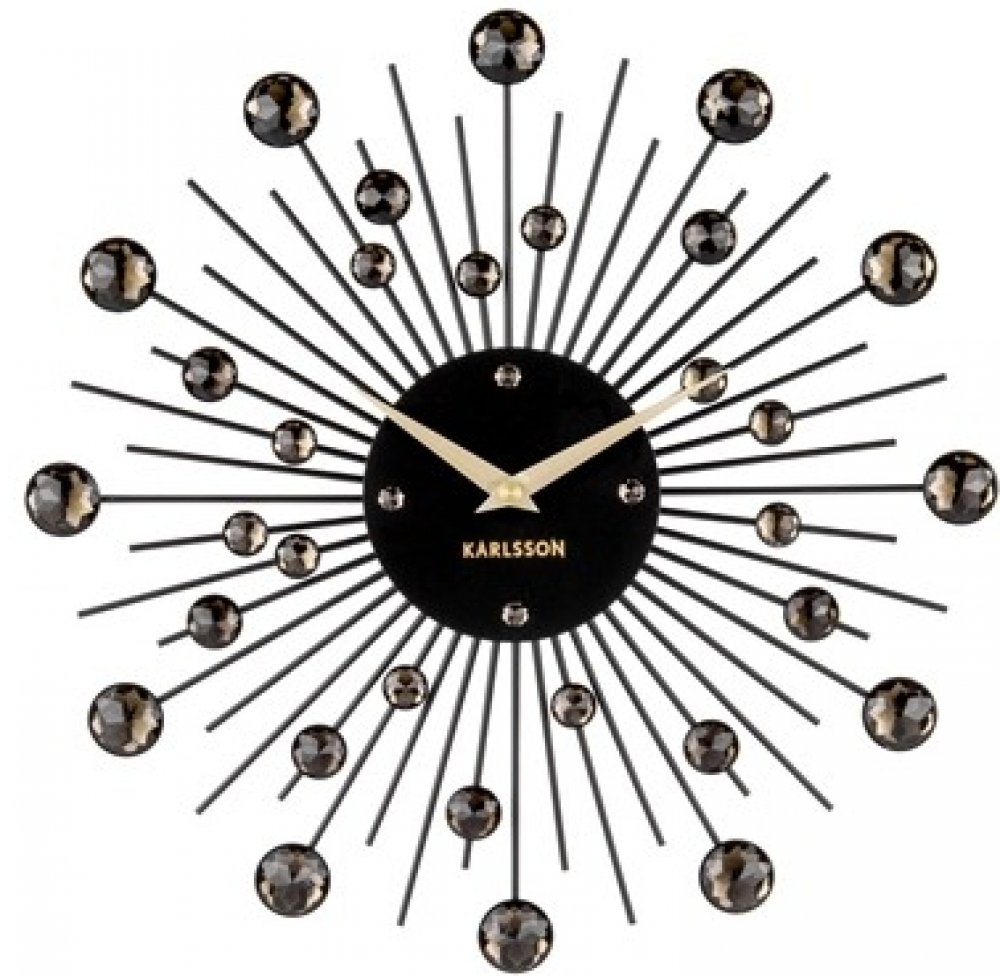 Pokud od hodin očekáváte design a vkus, zvolte značku Karlsson. Elegantní krystalové hodiny z lakovaného kovu se skleněnými "diamanty".