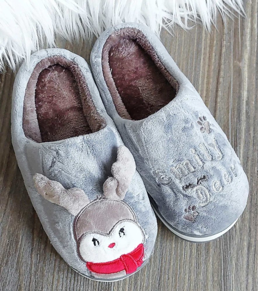 Měkké dětské papuče jsou na zimní období jako stvořené. Dobře zahřejí drobné dětské nožky. Porážka je hrubší a s příměsí gumy a tak papuče nekloužou ani na dlažbě nebo plovoucí podlaze.