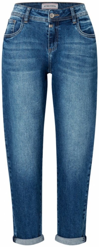 Thanks to the loose, slightly shortened leg and relaxed cut, cool and casual: casual jeans Regular Fit with a female high waist. Classic cut with five pockets in timeless Lissom Blue washing with permanent folds of seat and fine destructive details. High quality, elastic cotton mixture in Drapey Denim quality. With characteristic contrast seams, metal denim button with logo and small decorative rivets. Editors' note: Do not forget to wear with rolled legs.