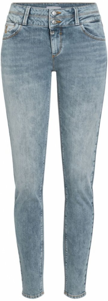 These wonderfully feminine jeans are a real styling hero. The elastane composition in the cotton creates a great stretch effect, which ensures a slim silhouette and the perfectly modeled bottom. In combination with the casual, faded vintage mineral gray wash, the split waistband with two buttons, the cool pocket details and the slightly slanted back pockets, a modern, contemporary denim look is created.