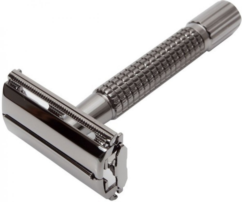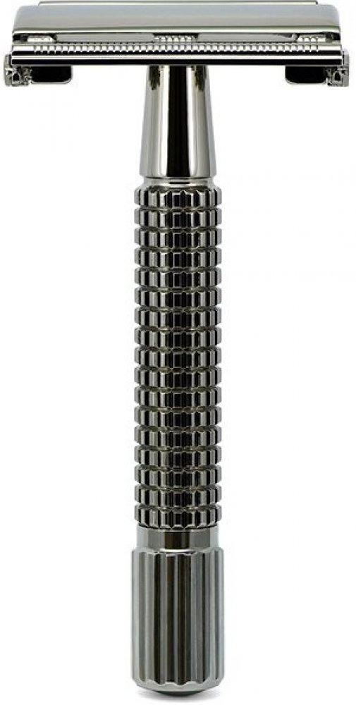 Kvalitní holicí strojek Timor v lesklé povrchové úpravě Black-Chrome a s hlavicí typu butterfly - hlavice se šroubováním rozevírá a tím umožňuje bezpečnou a rychlou výměnu žiletek.