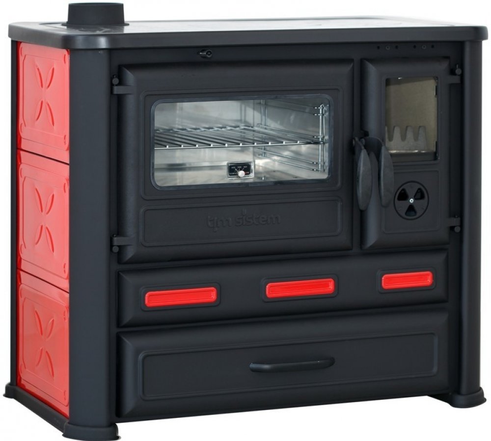 Tim sistem červené dřevo a dřevěné brikety levé 91 kg litinové 34 cm 8 kW 83 % 120 mm s troubou
