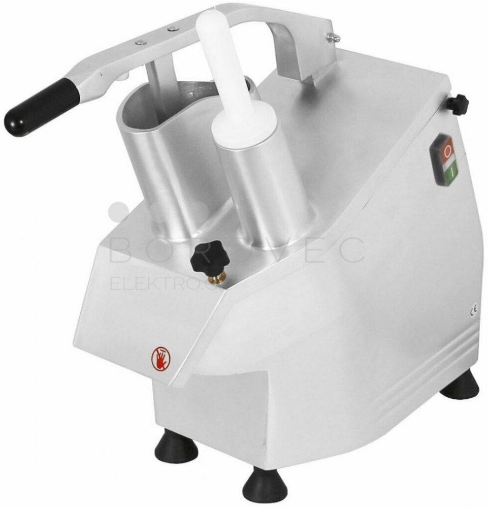 Vybaven dvěma plnícími otvory. Kulatý plnící otvor (průměr 55mm) pro přesné a rovné krájení dlouhých produktů (s plastovou přítlačkou) a velký oválný plnící otvor (80x170mm) s pákovou kovovou přítlačkou vybavenou koncovým spínačem pro bezpečné plnění. Vyhazování suroviny dopředu pro snadné odebírání a minimální požadavky na pracovní prostor.