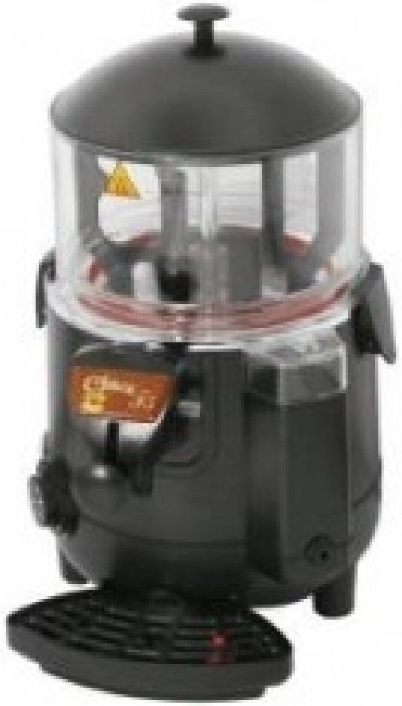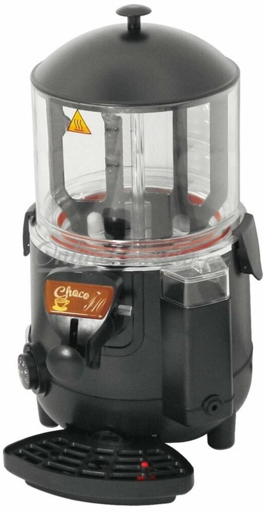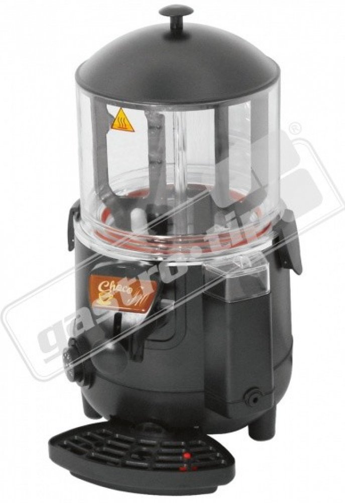 Výrobník horké čokolády CHOCO F-5 je koncipován na výrobu a prezentaci horké čokolády, ale i řady dalších horkých nápojů (káva, čaj, grog, punč, svařené víno atd.). Šetrný nepřímý systém ohřevu a udržení v teplém stavu (ohřev přes vodní lázeň-bain marie) s možností regulace teploty dle potřeby od +30 až do +100°C. Kontinuální rovnoměrné míchání (odolné míchací lopatky-vyjímatelné, hřídel vybavena silentblokem proti zanášení a namáhání) zamezuje tvorbě usazenin, sraženin a udržuje čokoládu v optimální konzistenci. Speciální konstrukce výpustného kohoutu zamezující ucpávání a umožňuje snadné čistění (kohout vybaven pákou snadného mechanického pročistění). Ohřev vody je prováděn v nerezovém duplikátoru (AISI 304), který je vybaven tepelnou ochranou. Snadno odnímatelná nádoba je vyrobena z odolného čirého polykarbonátu. Odkapová miska je vybavena plovákem indikujícím plný stav.
