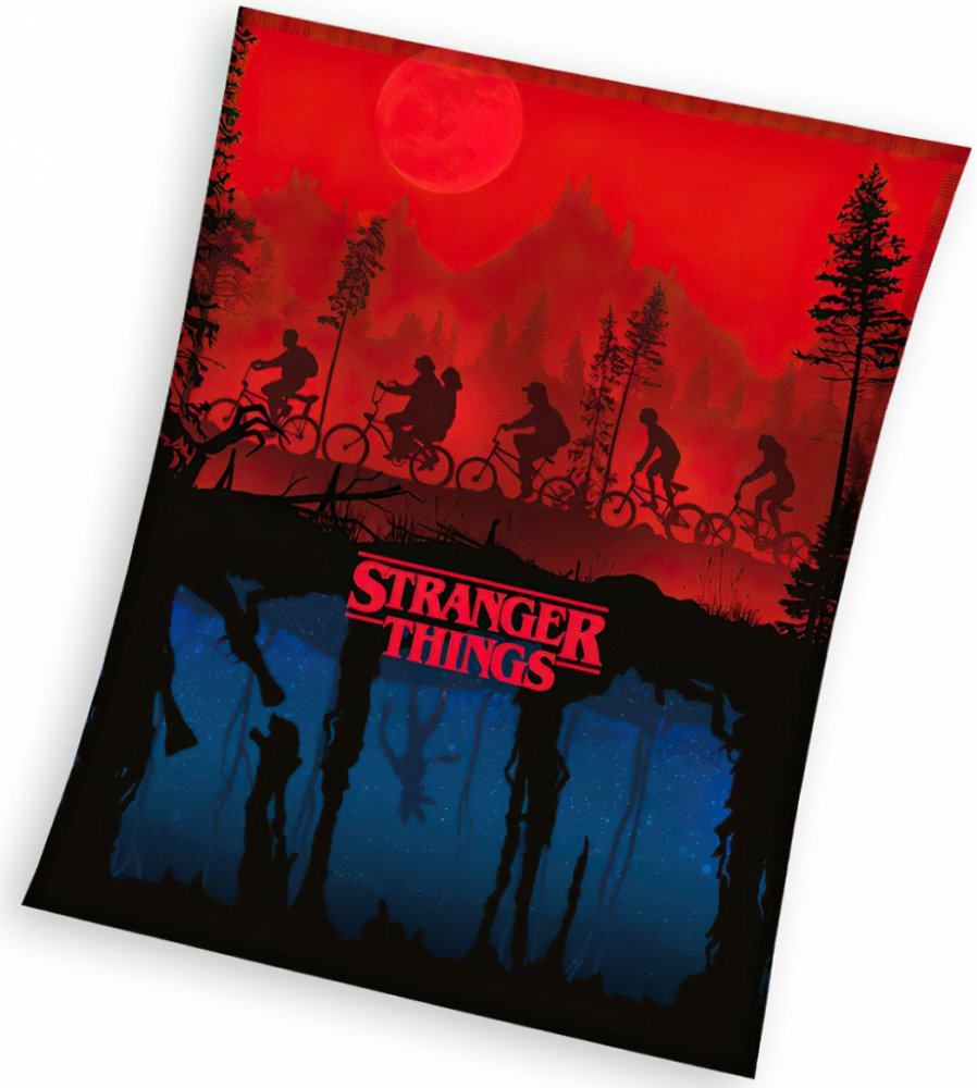 Deka z hřejivého mikrovlákna (mikro fleece) ze 100% polyesteru (gramáží 240 g/m²), neuvěřitelně hebká, jemná, hřejivá a sametová dětská deka. Deka je barevně rozdělená do dvou částí, na modrou a červenou. V červené barvě je reálný svět, kde jsou siluety našich hlavních hrdinů, kteří jedou na kolech, v modré barvě je paralelní svět, kde v ten stejný moment nachází příšera bez tváře. Deka je v rozmě...