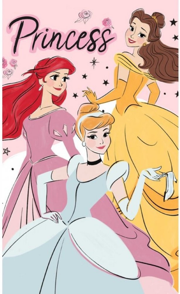 Dětský Disney ručník Princess Popelka Ariel a Belle , je vyrobený ze 100% bavlny, s gramáží 320g/m². Na růžovém froté ručníčku jsou princezny z tradičních Disney pohádek. Krásné červené vlasy má Ariel z pohádky Malá mořská víla, v ruce drží svůj střevíček Popelka ze stejnojmenné pohádky a nakonec ve žlutých šatech tančí princezna Bella z pohádky Kráska ...