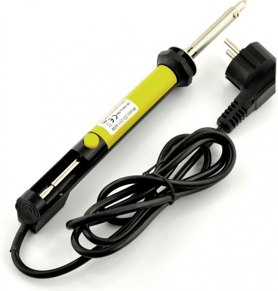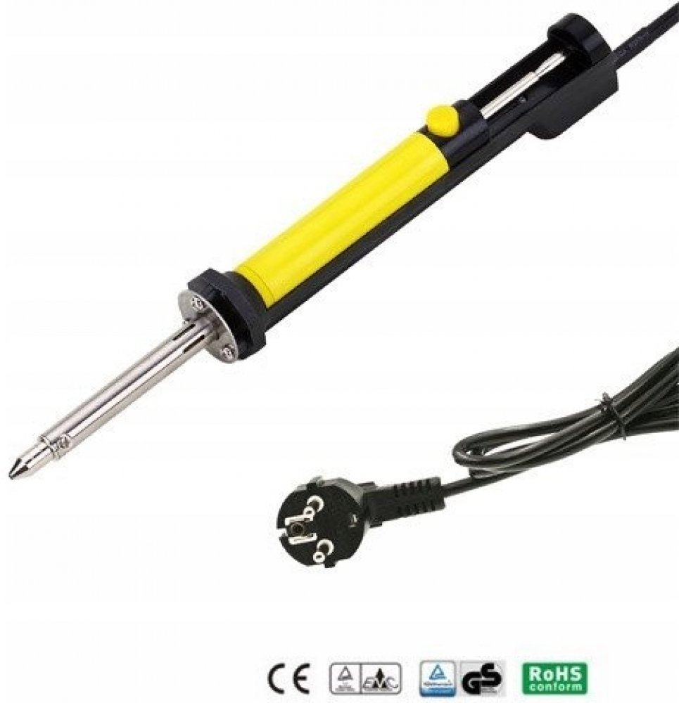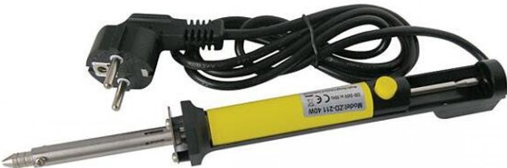 Tato pájka s odsávačkou ZD-211 je ideálním doplňkem pro každé pracoviště či dílnu. Hodí se pro středně velké práce při odpájení elektrických součástek a pro odsávání cínu z plošných spojů apod. Speciální kovový dutý hrot je nahříván topným tělesem a po zmáčknutí žlutého tlačítka se uvolní píst na pružině a hrotem se odsaje roztavená cínová pájka.