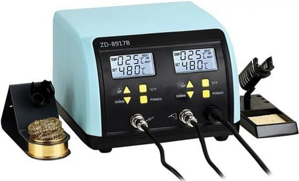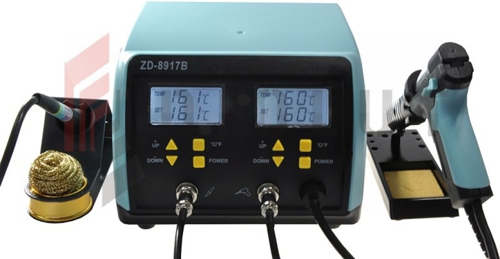 Vysoce výkonná multifunkční (pájecí/odpájecí) stanice ZD-8917B je vyvinuta a vyrobena pro výzkum, výrobu a opravy elektronických výrobků a je přizpůsobená pro bezolovnaté pájení a odpájení . Tento přístroj se používá v oblasti elektronického výzkumu, výuky a výroby, především při opravách a přepracování elektronických přístrojů a komunikačních zařízení. Díky rychlému zahřátí a vysokému výkonu je tato stanice vhodná pro čisté odpájení všech typů komponentů tištěných spojů. Díky chytře navržené struktuře, obsluze jednou rukou a vysokému výkonu lze snadno odstranit (odsát) pájku z jedno nebo oboustranných tištěných spojů. Tato odpájecí stanice s odsávačkou se používá v oblasti elektronického výzkumu, výuky a výroby, především při opravách elektronických přístrojů a komunikačních zařízení.