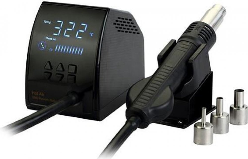 Horkovzdušná vyfoukávačka ZD-8968 má teplotní rozsah 100°C - 500 °C. Díky tomu se skvěle hodí k odpájení citlivých obvodů SMD jako SOIC,CHIP, PLCC, BGA a pod. Uplatní se ale i v řadě dalších oblastí použití, u nichž je důležitý koncentrovaný tok horkého vzduchu, např. při čištění 3D tiskáren, při nasazování za tepla, smršťovací hadičky, ohřívání materiálů při údržbě nebo montáži. Teplotu lze nastavit na LED displeji. Množství vzduchu je možné regulovat plynule regulací otáček ventilátoru a pomocí tří různých hrotů, které jsou součástí dodávky. Další hroty-nástavce podle tvaru SMD součástky je možné dokoupit. Pero je vybaveno rukojetí s protiskluzovou gumou, která nabízí větší pohodlí a usnadňuje manipulaci. Rukojeť horkovzdušné pistole má zabudovaný senzor. Jakmile ji zvednete, okamžitě přejde do pracovního režimu, a jakmile ji vrátíte do držáku, přejde do pohotovostního režimu. Funkce automatického pohotovostního režimu výrazně šetří energii.Parametry produktu: - LED digitální displej pro zobrazení pracovní teploty- plynule nastavitelná teplota vzduchu- plynulé nastavení množství horkého vzduchu - 3ks vyměnitelných hrotů pro koncentrovaný tok vzduchu- integrována do jediného přístroje- možno použít k vyfoukávání i k pájení SMD obvodů pomocí pájecí pasty- režim spánku - při odložení rukojeti do držáku se automaticky vypíná topení a po chvíli i ventilátor- vysoce kvalitní topné těleso přináší dvojnásobnou pracovní účinnost - ventilátor motoru zajišťuje jemný proud vzduchu, dlouhou životnost a velmi nízkou hlučnost během provozuTechnické parametry: - provozní napětí: 220-240V AC/50Hz- výkon (max.): 300 W- teplota (min.): 100 °C- teplota (max.): 500 °C- hmotnost: 1,2 kg- typ pájecího pera: odpáječka- kapacita vzduchové pumpy max. 20l/min- 3 × nástavec: průměr 4,4+8+12mm Obsah balení : - horkovzdušná vyfoukávačka ZD-8968 s rukojetí - 3 výměnné nástavce- odkládací stojan