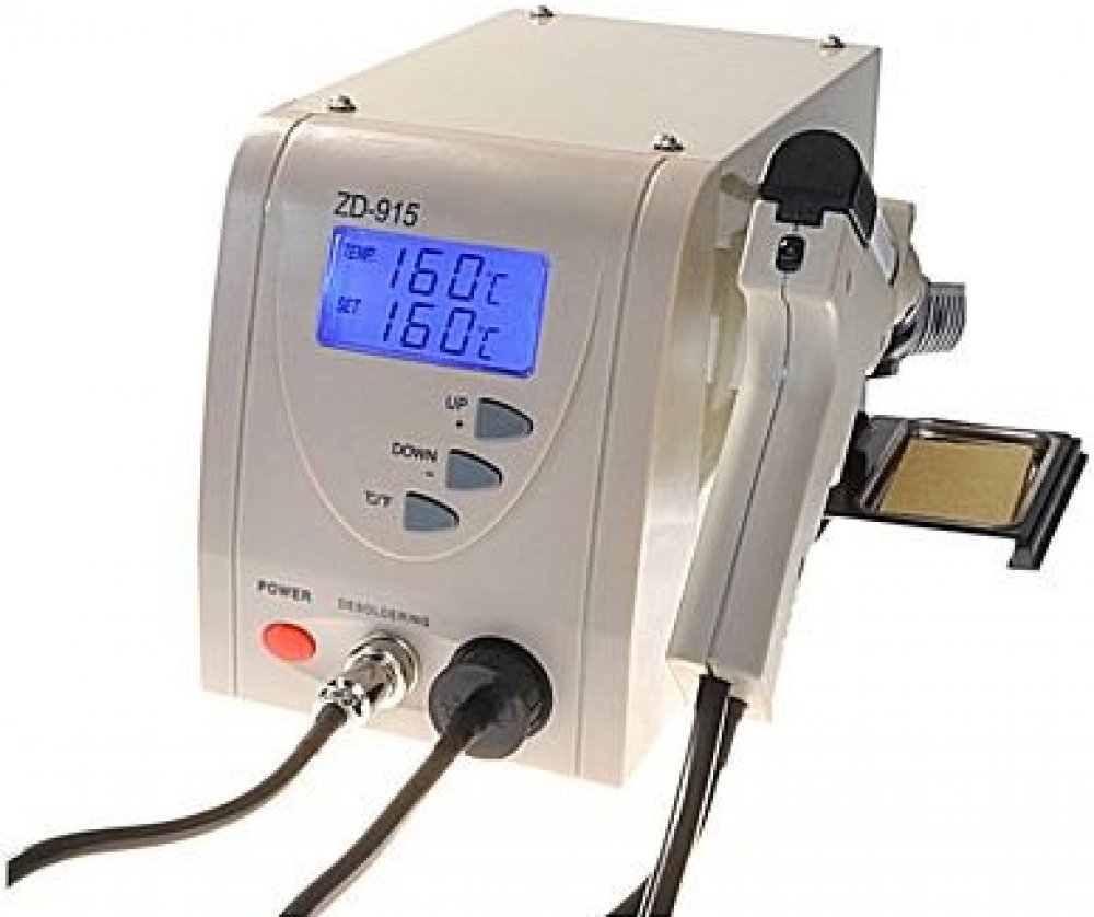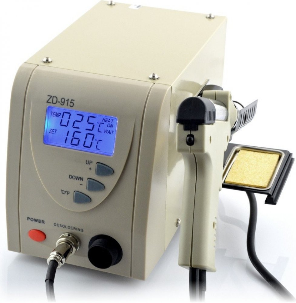 1) Řídící jednotka ZD-915 : Tato pájecí stanice je automaticky řízena mikroprocesorem. Digitální řídící elektronika a kvalitní systém výměny tepla zajišťuje přesnou regulaci teploty pájecího hrotu. Nejvyšší stupeň přesnosti nastavení teploty a optimálního dynamického tepleného chování při zatížení je dosaženo díky uzavřenému řídícímu obvodu. Nastavená i skutečná teplota hrotu se zobrazuje na dvouřádkovém displeji LCD.