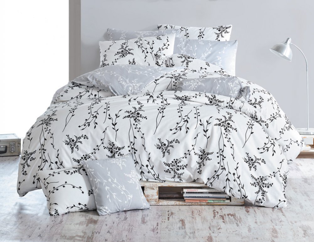 Ložní povlečení Blumen Šedé je vyrobeno ze 100% hladké bavlny renforce.