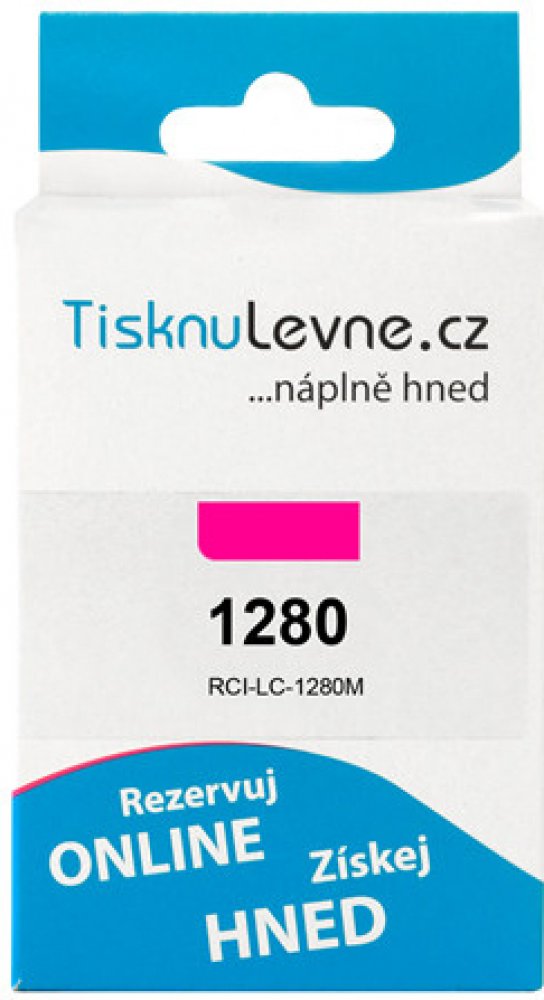 Purpurový zásobník TisknuLevne.cz (kompatibilní s Brother LC-1280XLM). Obsahuje 19,0000 ml. Vytiskne cca 1 200 stran A4 při pokrytí 5%.