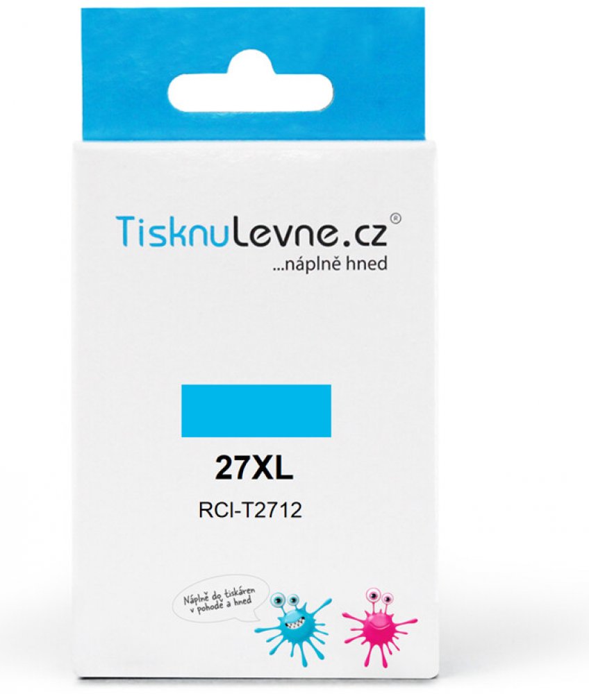 Azurový zásobník TisknuLevne.cz (kompatibilní s Epson T2712). Obsahuje 10,4 ml. Vytiskne cca 1 100 stran A4 při pokrytí 5%.