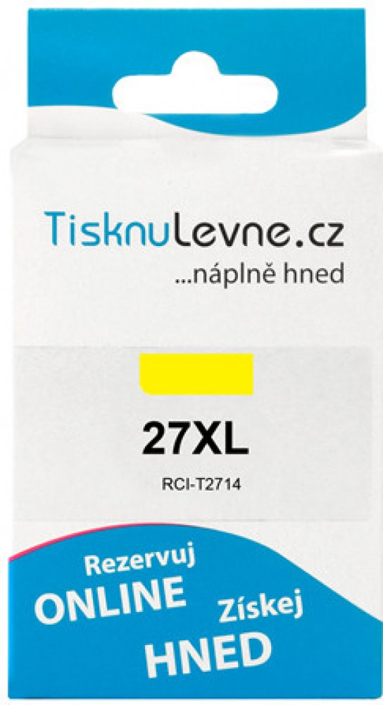 Žlutý zásobník TisknuLevne.cz (kompatibilní s Epson T2714). Obsahuje 10,4 ml. Vytiskne cca 1 100 stran A4 při pokrytí 5%.