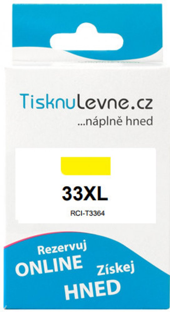 Žlutý zásobník TisknuLevne.cz (kompatibilní s Epson T3364). Obsahuje 8,9 ml. Vytiskne cca 650 stran A4 při pokrytí 5%.