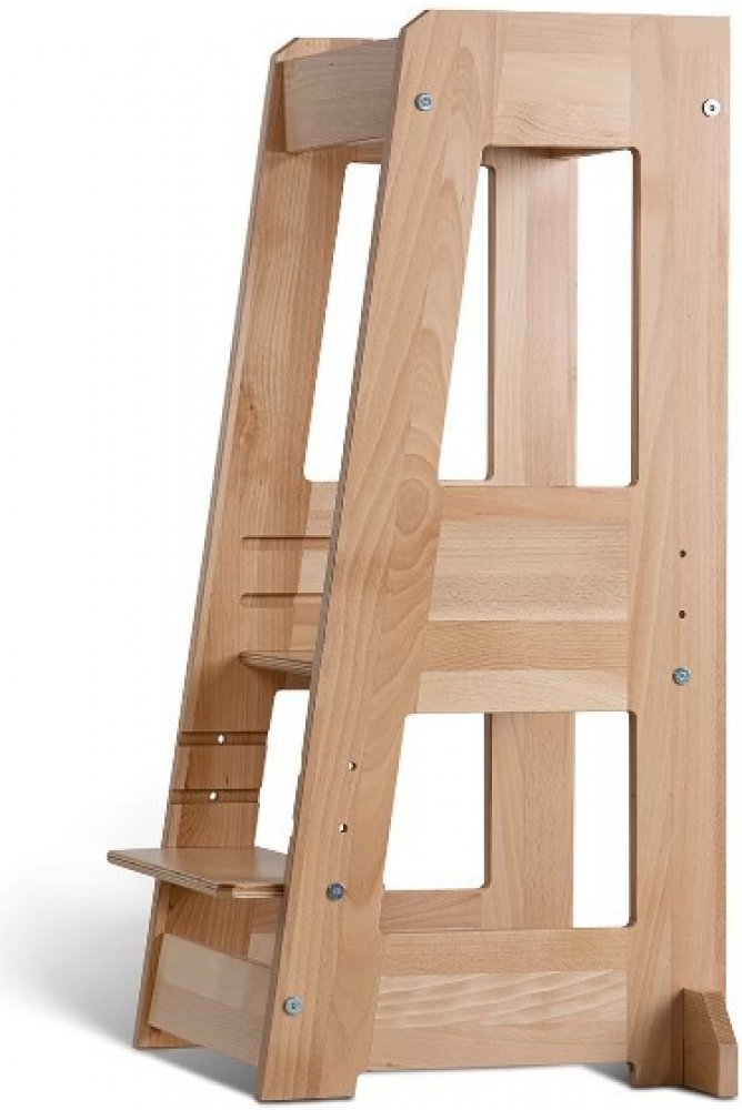 Pevná a stabilní - konstrukční řešení a masivní bukové dřevo zaručuje vysokou stabilitu a pevnost, extrémní odolnost proti náklonu. Přesto dítě nenechávejte v učící věži bez dozoru.