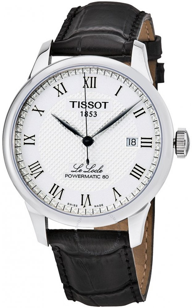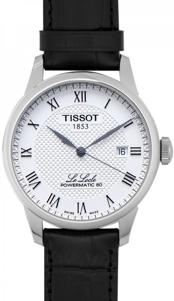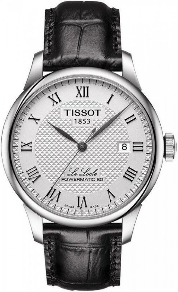 Dokonale přesné hodinky Tissot Le Locle Powermatic 80 s automatickým strojkem Powermatic 80.111. Hodinky vás uchvátí nejen svou jednoduchostí, ale i precizností. Zdobená číselník doplňují římské číslice a u čísla 3 můžeme spatřit datum. Kvalitní kožený řemínek v černé barvě ladí s celým designem hodinek. Safírové sklíčko velmi dobře chrání proti poškrábání.