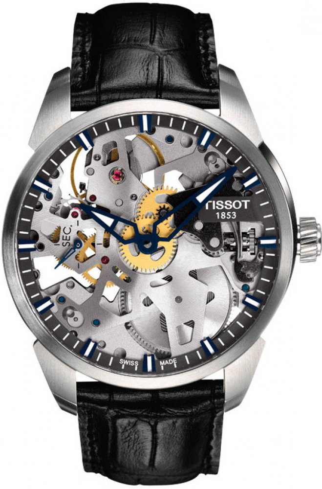 Krásné pánské hodinky švýcarské výroby od značky Tissot z řady T-Classic Complications Squelette s mechanickým nátahem jsou vyrobeny z ušlechtilé oceli 316L a svým průměrem pouzdra 43 mm se řadí mezi středně velké pánské modely. Jejich elegantní vzhled doplňuje kožený hnědý řemínek s trnovou sponou a hodinky jsou vhodné do společnosti, ale i pro každodenní nošení. Tento model je vyjímečný předevší...