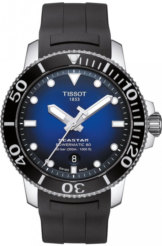 Tissot analogové pryž sportovní pánské automatické pro potápění (100+ m) 43.0 mm ocel 300 m automatické 108 g safírové kamínky Seastar kulaté modrá modrá s luminiscencí trnová spona 2.1 cm na ruku švýcarské bez číslic 4.3 cm střední jednosměrně otočná keramika 80 h 12.0 mm 21.0 mm 12.7 mm s dočasným svícením (luminiscence/LED) s občasnou údržbou (automatické)
