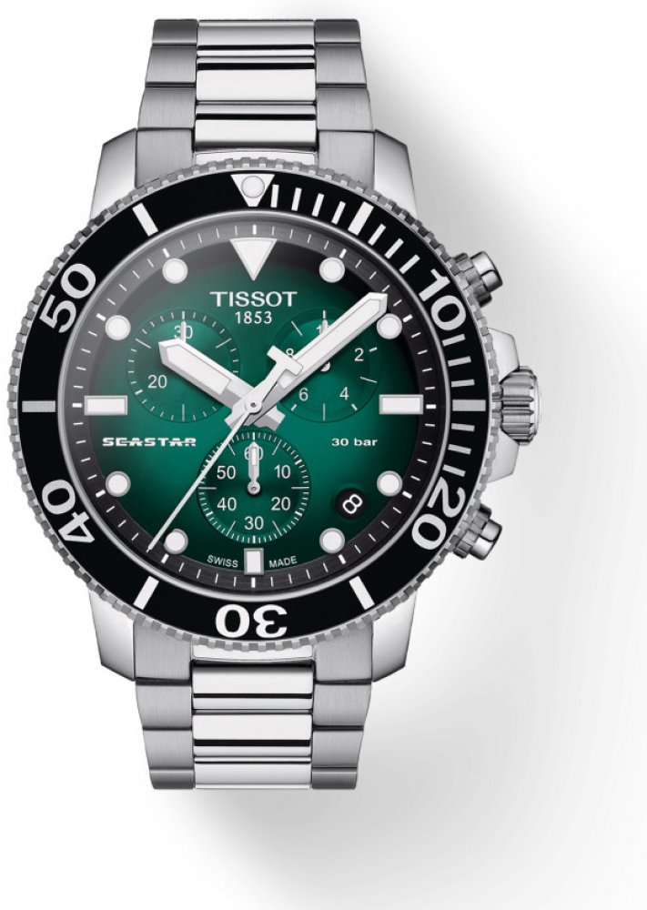 Tissot analogové ocel klasické pánské bateriové - quartz pro potápění (100+ m) 45.5 mm ocel 300 m bateriové 180 g safírové kamínky Seastar kulaté stříbrná zelená se superluminou překlápěcí spona 2.2 cm na ruku švýcarské bez číslic stříbrná 4.55 cm velké s přesností 1/10 sekundy jednosměrně otočná ocel 12.8 mm 22.0 mm 3 12.8 mm s trvalým svícením (tritium/Super-LumiNova) s nenáročnou údržbou (quartz) bez chytrých funkcí