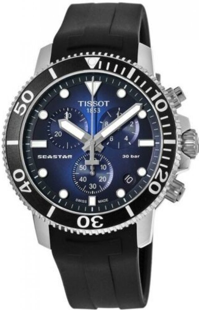 Tissot SEASTAR 100 QUARTZ jsou opravdovou hvězdou, která se s dokonalou elegancí stane vaším nejoblíbenějším doplňkem. Pánské hodinky skvěle kombinují atraktivní černou a temně modrou. Kaučukový pásek pohodlně a pevně fixuje. Originálně zpracovaný ciferník vás vždy spolehlivě provede časem a pomůže optimálně plánovat povinnosti i volný čas. K přesnému času hodinky přidávají datumovku a chronograf.