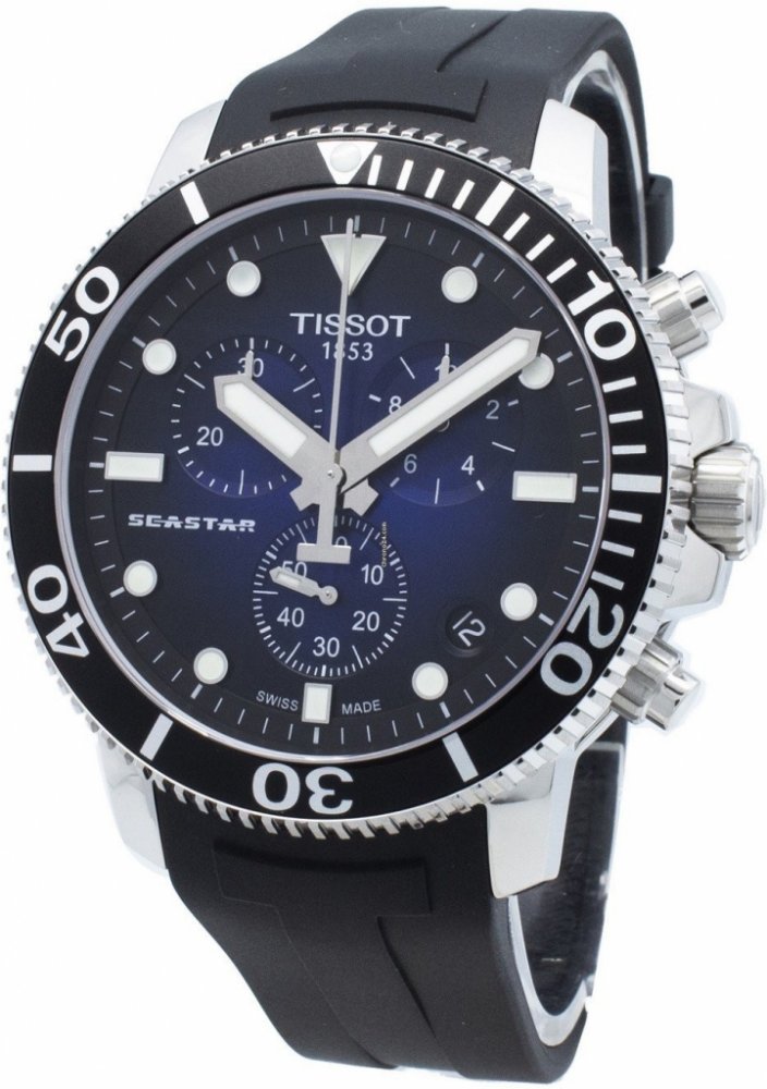 Tissot analogové pryž sportovní pánské bateriové - quartz pro potápění (100+ m) 45.5 mm ocel 300 m bateriové 109 g safírové 4.55 cm kamínky Seastar kulaté černá modrá s luminiscencí trnová spona 2.2 cm na ruku švýcarské bez číslic stříbrná ocel 4.55 cm velké s přesností 1/10 sekundy jednosměrně otočná keramika 12.8 mm 22.0 mm 3 12.8 mm s dočasným svícením (luminiscence/LED) s nenáročnou údržbou (quartz) bez chytrých funkcí