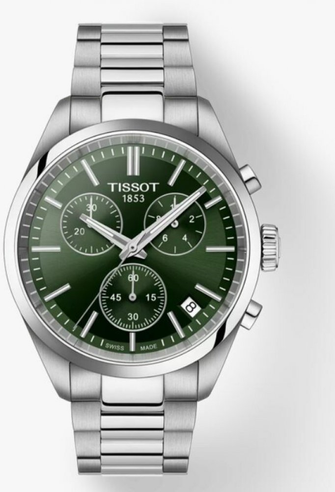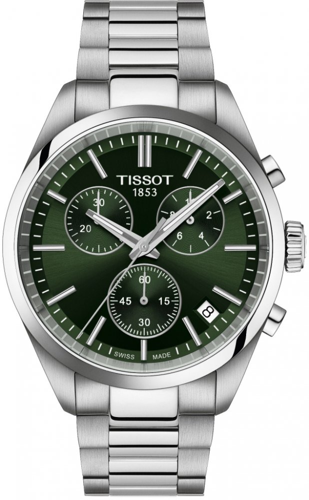 Tissot PR 100 Chronograph T150.417.11.091.00 jsou pánské hodinky na broušeném ocelovém náramku s motýlkovou sponou. Pouzdro z nerezové oceli má průměr 40 milimetrů. Tmavě zelený číselník s efektem slunečního brusu, chronografem a ukazatelem data je chráněn odolným safírovým sklíčkem. Ručičky a indexy jsou potaženy luminiscenční vrstvou Super-LumiNova®, která garantuje perfektní čitelnost za zhorše...