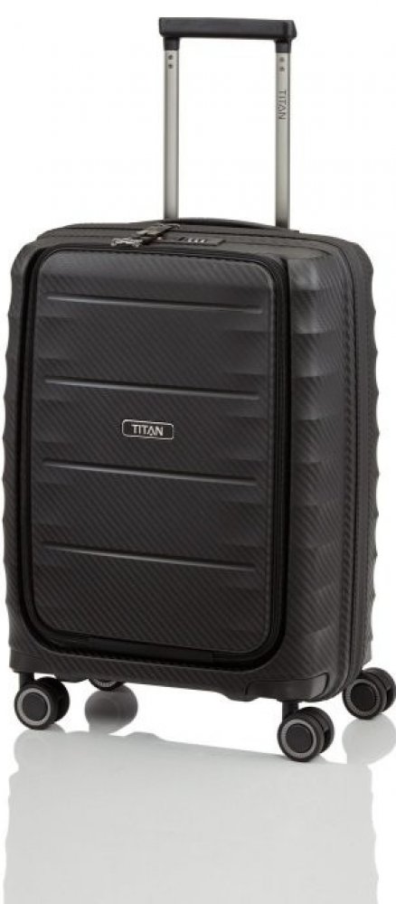 Palubní cestovní kufr Titan Highlight s tichými kolečky, odlehčenou skořepinou z odolného a nárazuvzdorného polypropylenu a výklopnou kapsou a přihrádkou na 15,6“ notebook. Prostorný interiér s dělicí příčkou, popruhy a vnitřními kapsami pomůže snadno a přehledně roztřídit a uložit vaše věci. Špičkovou funkční výbavu doplní i jemný reliéf se vzorem připomínající luxusní uhlíkovou vrstvu! Kufr splňuje normy pro kabinové zavazadlo většiny leteckých společností. Vlastnosti: - čtyři tichá dvoukolečka otočná o 360° - odlehčená výsuvná rukojeť s aretací umožňující fixaci v různých výškách - vnořený TSA zámek pro bezproblémové cesty do USA a Velké Británie - oboustranný balicí systém - dělicí přepážka s kapsou na zip - fixační popruhy - vnitřní kapsa na zip - pogumované madlo - jemná podšívka - povrchová struktura ve stylu Carbon Optik - podšitý zip - integrovaný organizér ve výklopné kapse - polstrovaný oddíl na 15,6″ notebook - přihrádka na tablet - výklopnou kapsu lze sepnout integrovaným TSA zámkem hlavní přihrádky - prodloužená záruka 3 roky