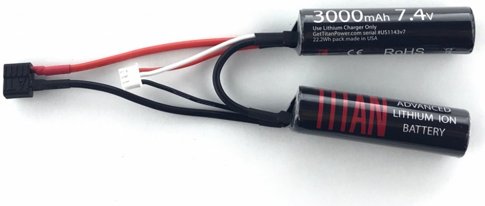 Li-Ion baterie TITAN je navržena speciálně pro airsoft, protože dodává zbrani vysoký výkon a spolehlivost. Je vyrobena z kvalitních článků s vysokou energetickou hustotou, nabízí až 5x větší kapacitu a schopnost dodávat až 2x vyšší proud než běžné airsoftové baterie. I po 300 nabíjecích cyklech si zachová minimálně 80 procent původní kapacity, což zaručuje dlouhou životnost.B...