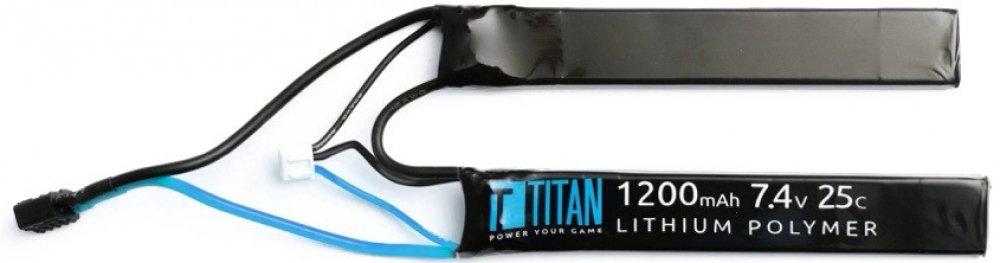 Li-Pol baterie TITAN je vybavena špičkovými články, které zajišťují stabilní a vysoký výkon pro vaši airsoftovou zbraň.