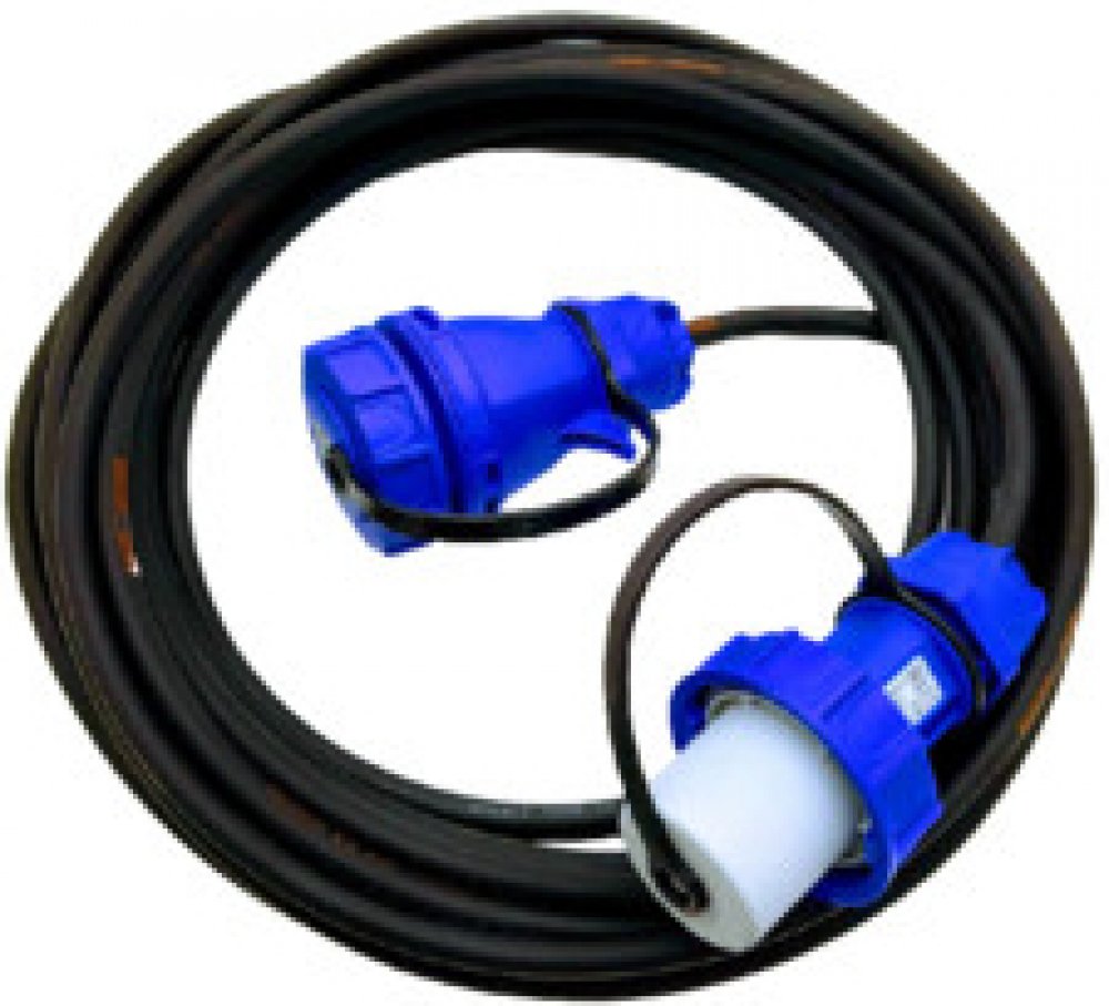 Prodlužovací kabel gumový černý na 230V 1m 1-zásuvka spojková na kabel vodotěsná velmi vysoké krytí proti vodě a vlhkosti IP68 s extrémně odolným kabelem H07RN-F 3x1,5mm TITANEX. Prodlužovací kabel venkovní gumový s modrými koncovkami odolný proti vodě s krytím IP68. Extrémně odolný černý pryžový značkový kabel TITANEX H07RN-F na 240V a modré zástrčky a zásuvky které odolávají i ponořením do vody ...