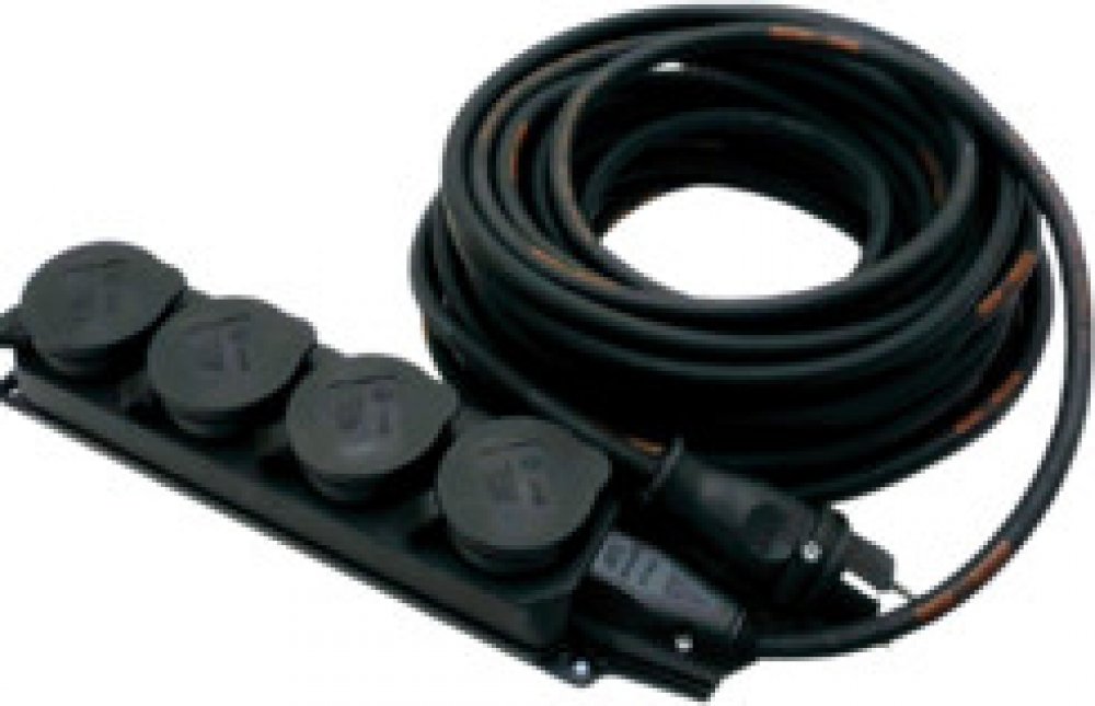 Prodlužovací kabel venkovní gumový černý 50m 4 zásuvka 230V H07RN-F 3x2,5mm IP44 TITANEX. Prodlužovací kabel venkovní gumový 240V harmonizovaný TITANEX pro suché, ale hlavně pro extrémně náročné podmínky do vlhka a vody. Odolává a neztrácí své vlastnosti i v silně znečištěném prostředí a proto je vhodný zejména na stavbách v průmyslu, zemědělství. rodinných domech, dílnách, garážích i zahrádkách....