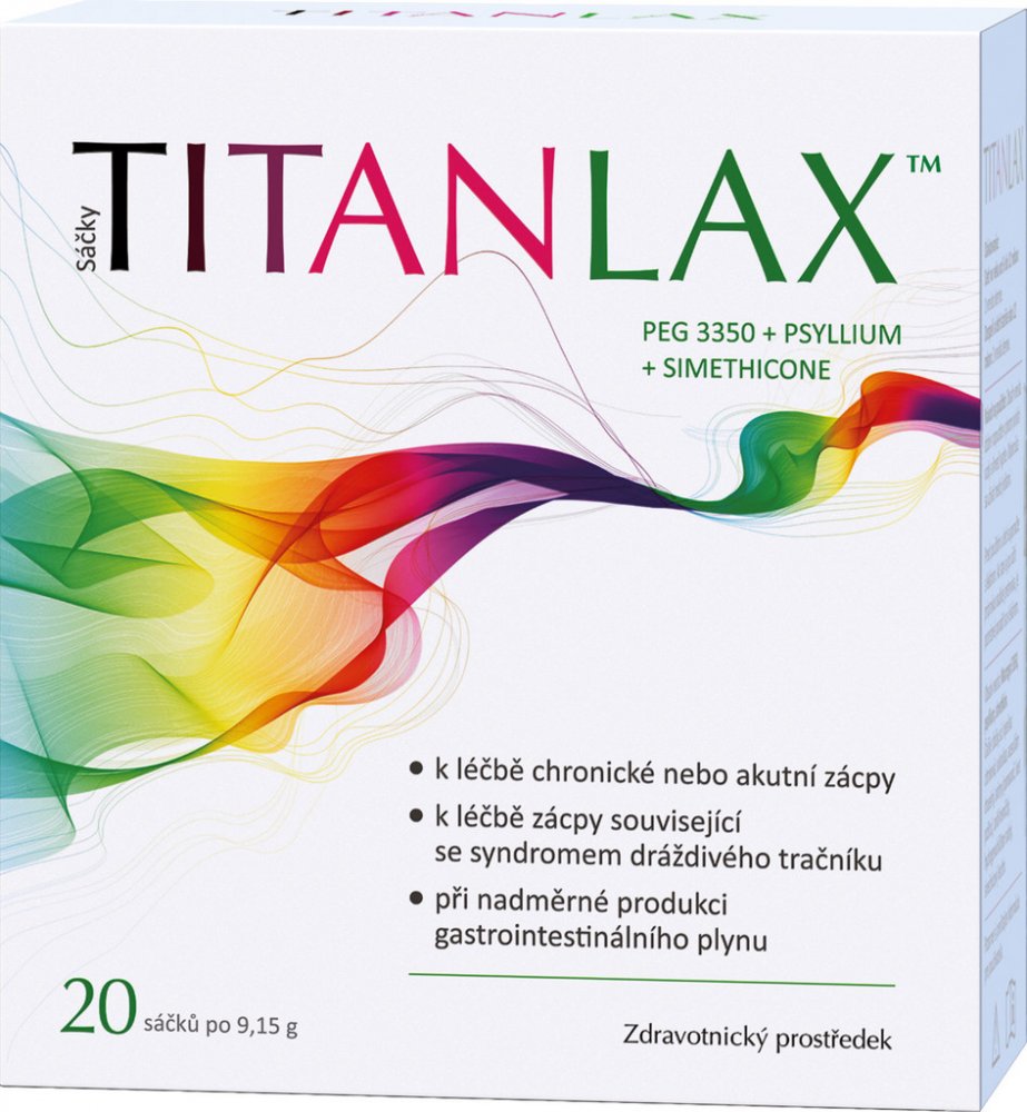 Titanlax je zdravotnický prostředek, ideální pro léčbu chronické zácpy, ale i zácpy spojené se syndromem dráždivého tračníku (IBS). Pokud vás trápí zácpa opakovaně, může za ní stát špatný životní styl, užívání léků nebo jiné onemocnění. Chronická zácpa je někdy spojená se tzv. syndromem dráždivého tračníku (IBS), což je chronická zažívací porucha, kterou doprovázejí příznaky, jako jsou bolesti bři...