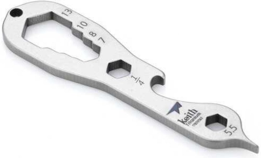 Titanový multifunkční nástroj na klíče 1705 Keith je vynikajícím pomocníkem pro všestranné použití. Má praktické očko na klíče, případně si ho upevníte na provázek u batohu, takže ho nikdy neztratíte a budete ho mít vždycky u sebe. Nejvíce oceníte jeho univerzální používání. Můžete šroubovat, otevírat lahve a k tomu má několik drážek pro klíče nejrůznějších velikostí.