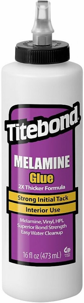 Titebond Melamine Lepidlo na dřevo je nehořlavé vinylacetátové lepidlo snadno čistitelné vodou. Má nízký zápach a průhlednou barvu po vytvrzení. Je ideální pro lepení detailních prací, které vyžadují snadné lepení bez stékání. Lepidlo je určeno k lepení dřeva, dřevotřísky, MDF desek a dalších porézních materiálů k syntetickým materiálům, jako je melamin, vinyl, HPL, nebo také ke kovům. Rychlá fixace s delší dobou otevření umožňuje přesné srovnání dílů. Lepidlo není vhodné pro venkovní použití a konstrukční spoje.