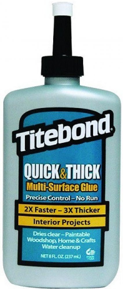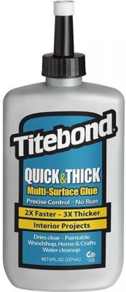 Titebond Quick & Thick je disperzní lepidlo s nejrychlejší fixací, a maximální pevností vyniká svými vlastnostmi nad ostatní lepidla. Ideální pro lepení například okrasných lišt a dalších projektů požadujících rychlé lepení bez stékání v interiéru. Snadné k použití, rychlá fixace, která však dostatečně dovoluje vyrovnání dílů. Vynikající pro porézní i polo-porézní materiály. Lepidlo není vhodné pr...