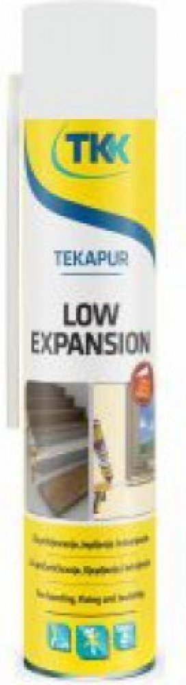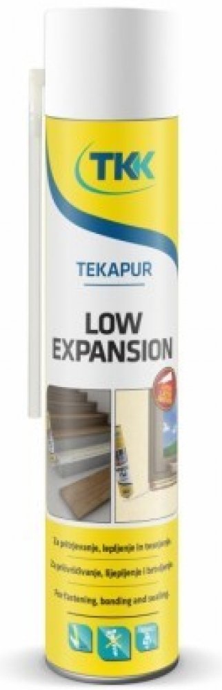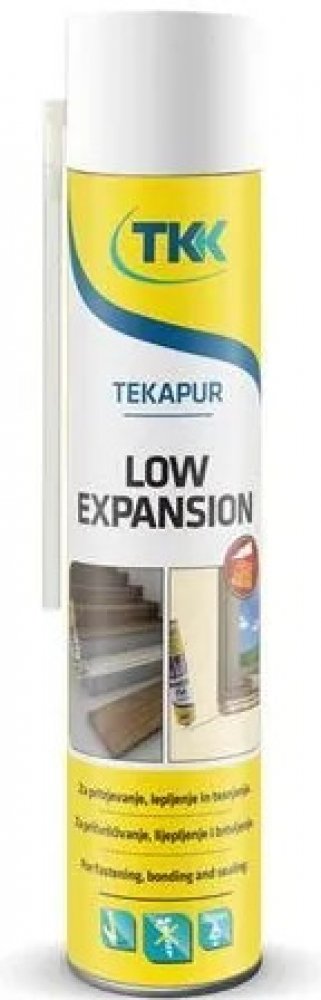 Používá se k upevnění, lepení a utěsnění konstrukčních prvků, jako jsou parapety, schody nebo ozdobné lišty. Tekapur Low Expansion je málo expandující jednosložková polyuretanová pěna používaná k fixaci, utěsnění a plnění pomocí pistole. Tvrdne vzdušnou vlhkostí.