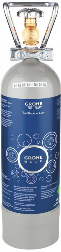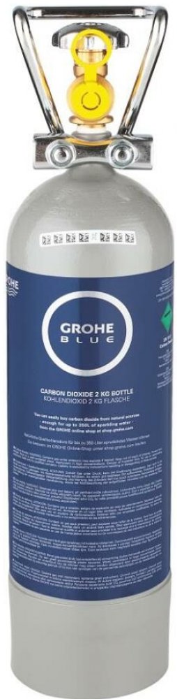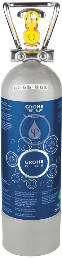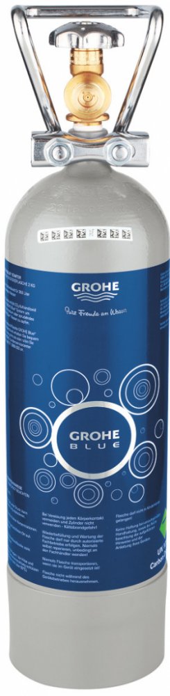 Karbonizační láhev pro použití se systémem Grohe Blue Professional obsah 2 kg pro filtrovanou a perlivou vodu dostačuje k poskytnutí až 350 litrů perlivé vody CO2 výhradně z přírodních zdrojů s čistotou 99,9 % součástí lahve je praktická rukojeť pro bezpečnou přepravu a integrovaný uzavírací ventil jednoduchá a rychlá instalace láhev není vhodná pro použití s Blue Home