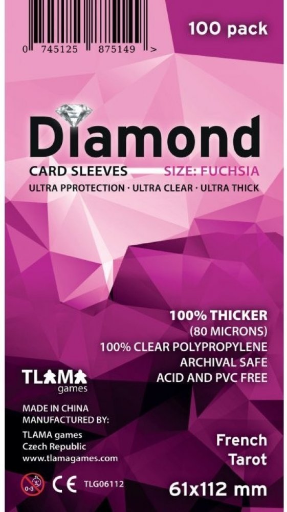 Rozměr Fuchsia: French Tarot (61x112 mm), je určen pro hry jako je 18Lilliput, Adrenaline, Dark Tales, The Dwarf King, Mission: Red Planet, Pictomania, Unlock!, Pandemic: Reign of Cthulhu a další...