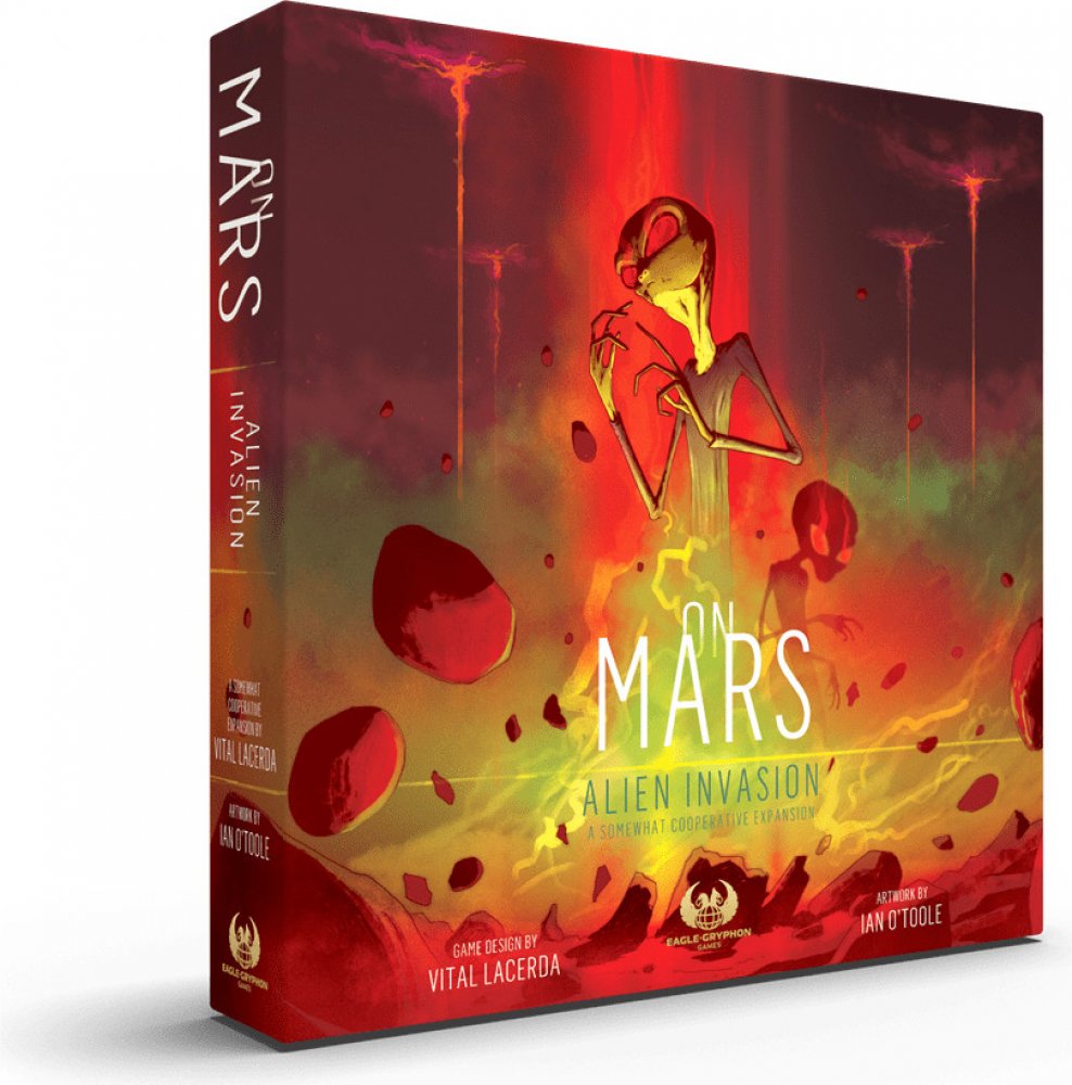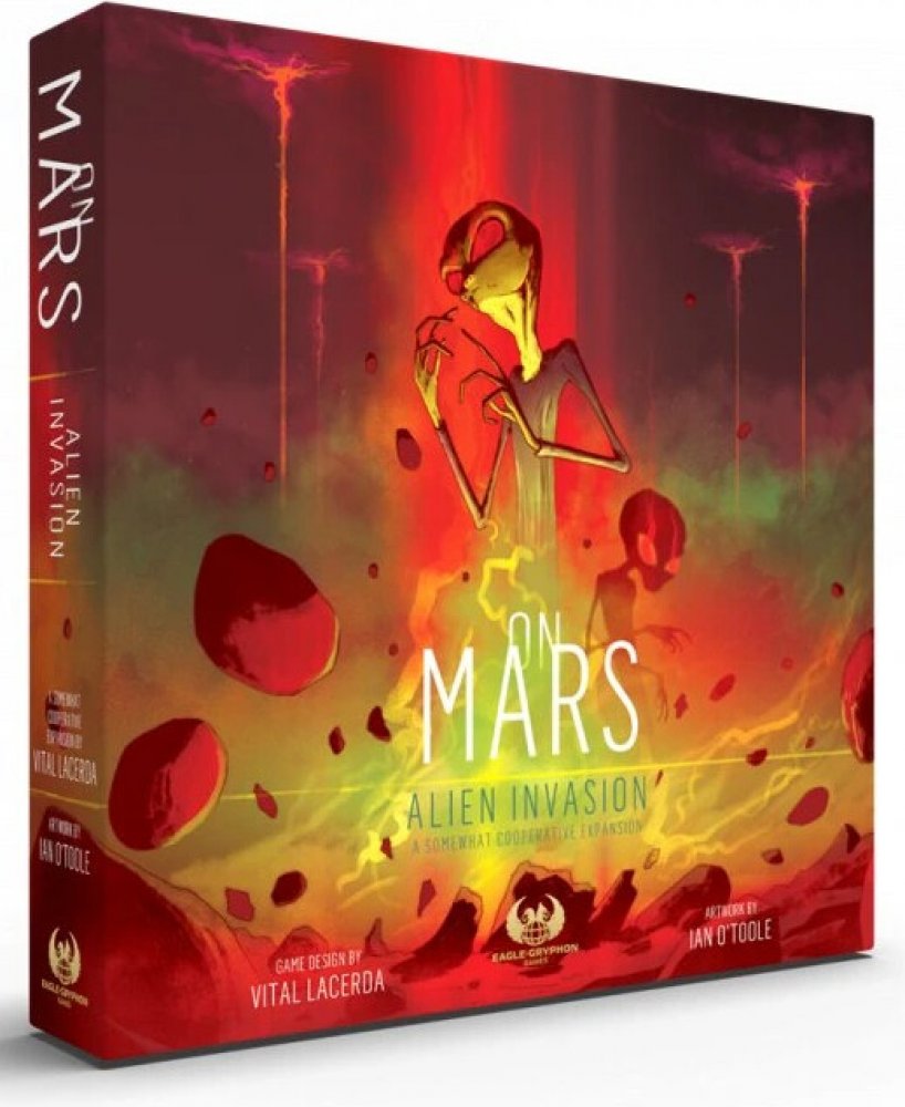 On Mars: Alien Invasion je dlouho očekávané částečně kooperativní rozšíření k nejprodávanější a vysoce hodnocené strategické hře On Mars od Vitala Lacerdy. Ačkoli se toto rozšíření mělo původně jmenovat Surviving Mars (Přežít na Marsu). Aby však lépe odrážel téma a obsah tohoto rozšíření, byl přejmenován na On Mars: Alien Invasion (Mimozemská invaze). Herní příběh, který napsal Nathan Morse, je ro...