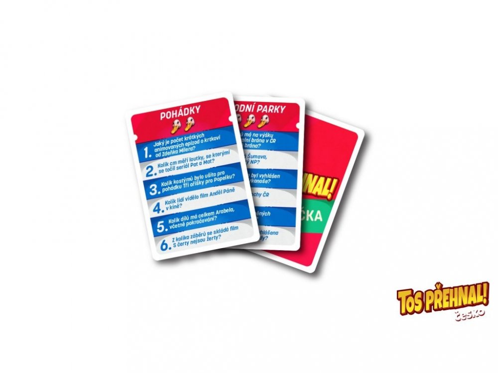 Tos přehnal je opravdu zábavná hádací párty hra o číslech, otázkách a odpovědích, které jen těžko budete vědět. Ve hře najdete celkem 360 otázek a odpovědí, které si stejně nejspíš nezapamatujete, tak můžete hru hrát znovu a znovu. Tato verze obsahuje otázky z ČR rozdělené do 60 témat.