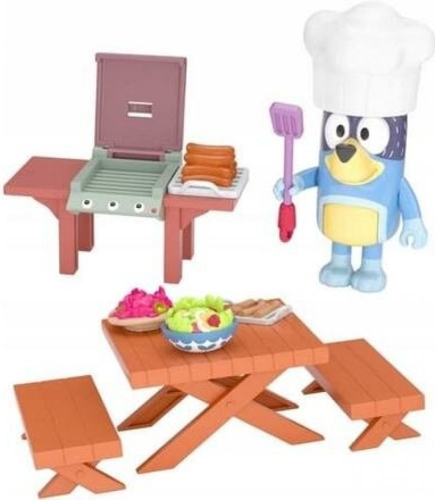 Na dvorku je sada s pohyblivou figurkou Bandita , který hrál roli kuchaře. Blueyho táta je mistr BBQ. Má na sobě zástěru a kuchařskou čepici. Má dokonce lopatku, aby mohl jídlo na grilu otočit!