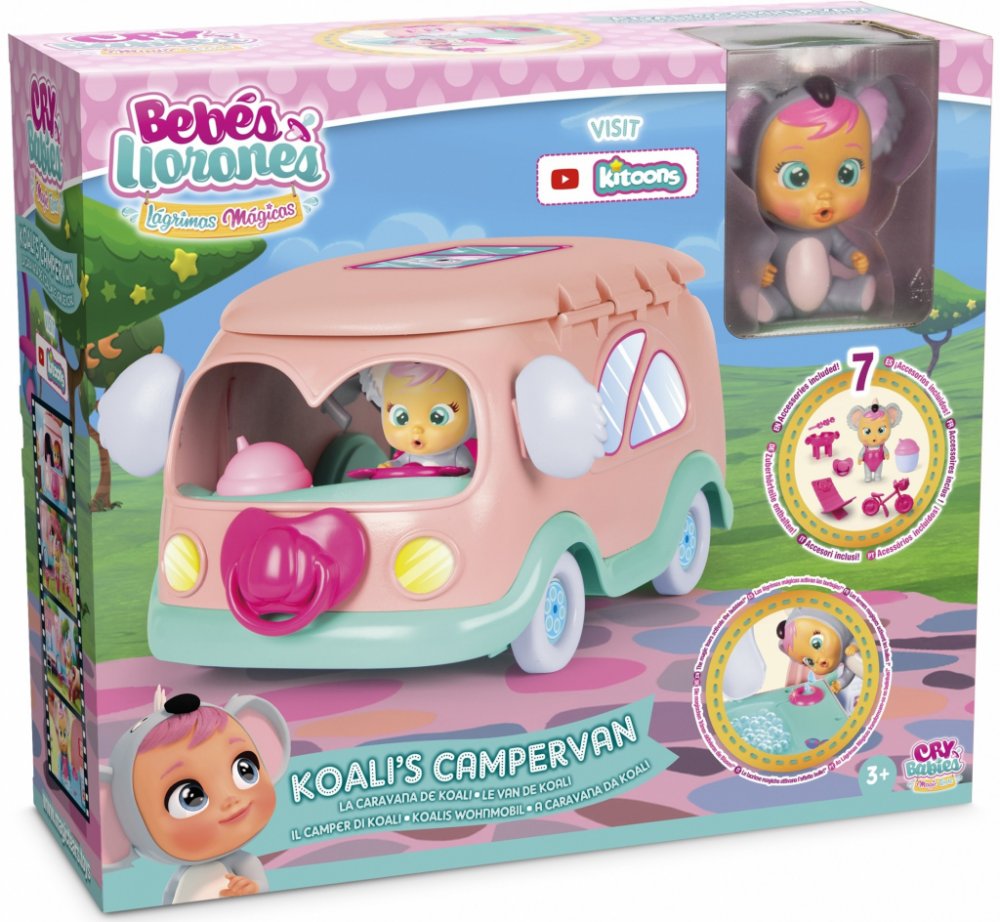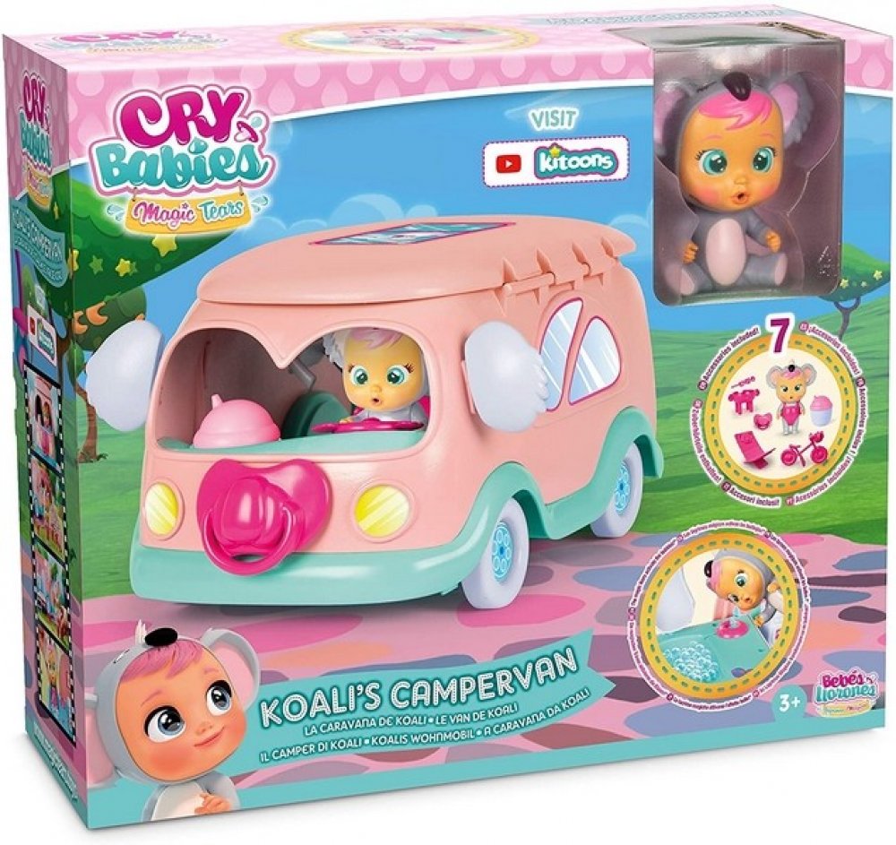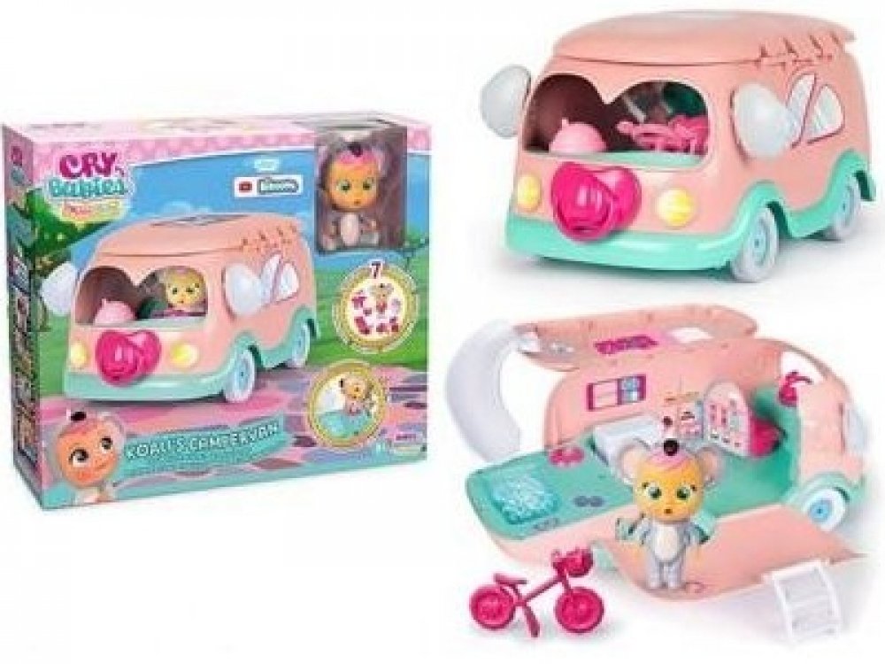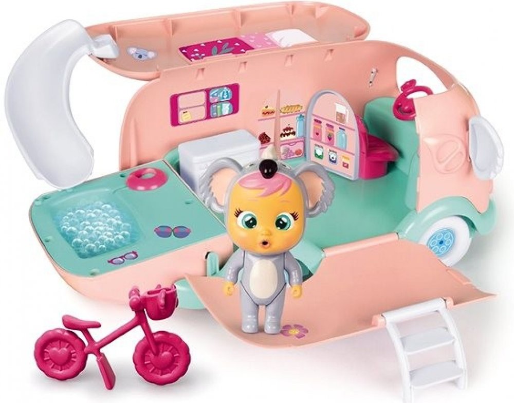 S roztomilou panenkou ze série Cry Babies a jejím karavanem se skvěle zabaví každá holčička od 3 let. Kam s panenkou v koalím oblečku vaše malá cestovatelka vyrazí a jaká dobrodružství spolu zažijí? S karavanem si svůj výlet opravdu užijí. Panenka může jezdit na kole, ugrilovat něco dobrého k snědku nebo lenošit na lehátku. Tím ale zábava ještě nekončí. Panence dáte napít z lahvičky, a když ji pa...