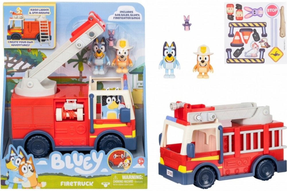 Bluey a Bingo vyrážejí do akce! S hasičským autem Bluey Fire Truck se vaše dítě stane součástí záchranné mise plné dobrodružství.